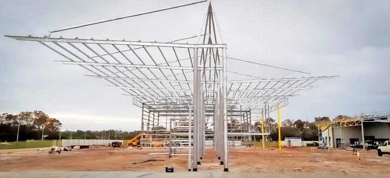 The new Vasse depot is situated on 1.89 hectares and contains a multitude of facilities to enable Western Power to provide for their customers.  We were engaged to fabricate, paint and install various structures including workshops, office, wash bays and canopies, a total of 200T of steel, excluding roof purlins.